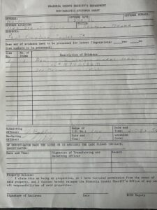 “On Tuesday, July 22, 2025, I was reviewing court paperwork and found an Evidence Sheet from the Brazoria County Sheriff’s Department. The weapon was logged into evidence at 8:05 a.m. on February 8, 1995 — a Remington 1100 shotgun.