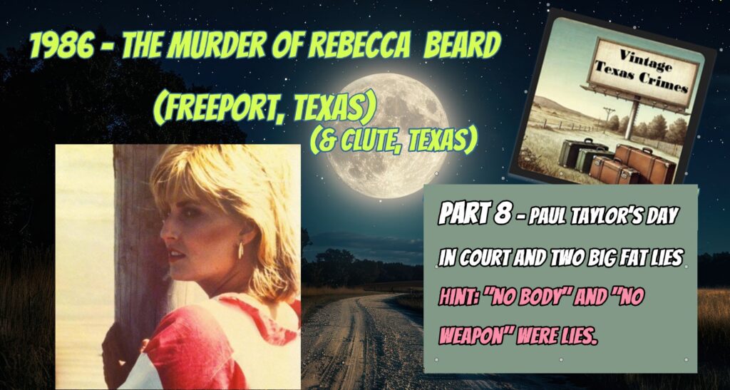 All who find this revival of Rebecca’s story to be a pain in your arses, keep in mind that Rebecca’s family believed the “Paul Taylor Alone Did It” story for over 35 years. They did not question it or the authorities in Brazoria County.